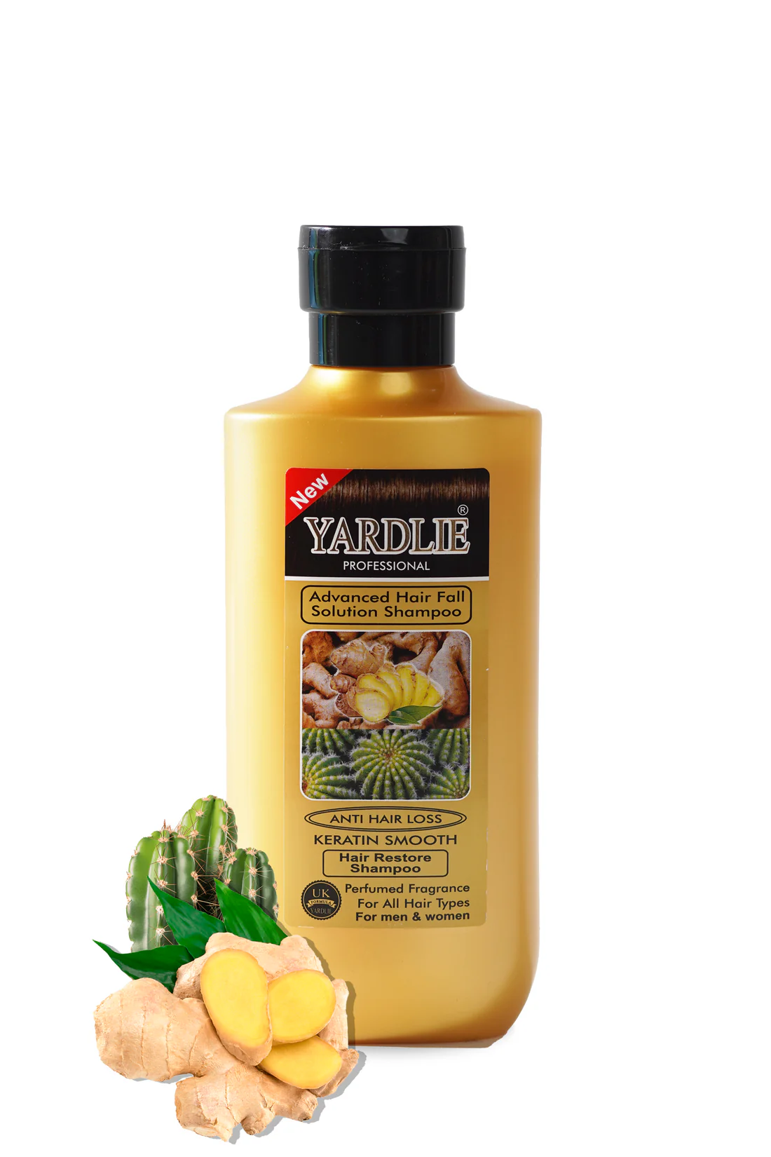 The Yardlie Ginger and Cactus Shampoo is a hair care product designed to promote hair growth, strengthen hair follicles, and reduce hair fall. It is formulated with natural ingredients like ginger and cactus, which are known for their hair-enhancing properties.