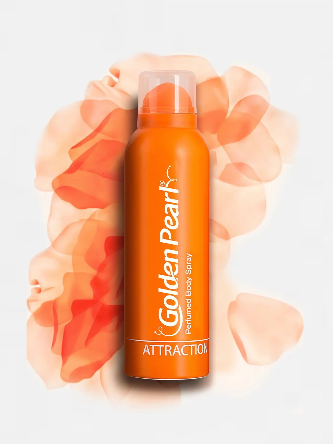 Indulge in the captivating scent of the Golden Pearl Attraction Body Spray. Let your natural beauty shine through with this irresistible fragrance.