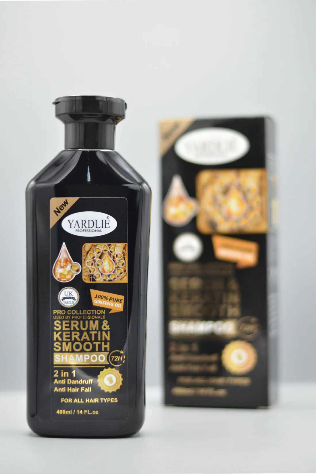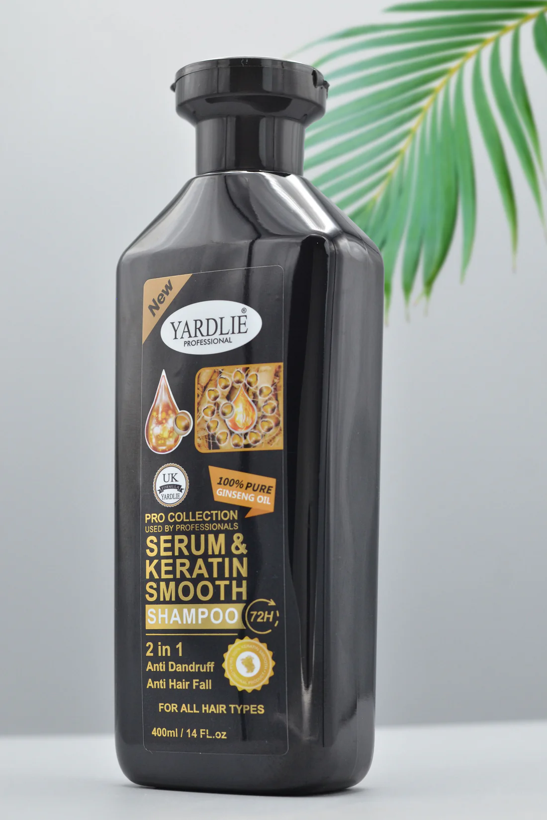 The Yardlie Professional Pro Serum & Keratin Shampoo 400ml is a hair care product designed to nourish, strengthen, and revitalize your hair. It is formulated with a unique blend of Pro-Serum and Keratin, which work together to improve hair health and promote growth.